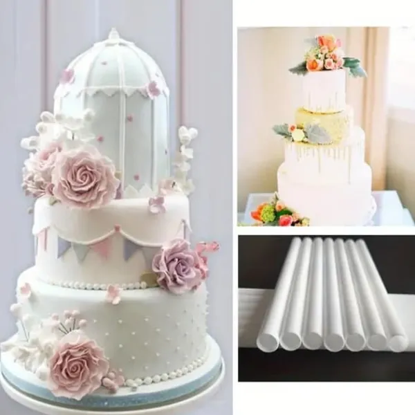 Hver støtte er rørformet, hvilket gør det nemt at justere den til enhver type kage. For at justere den til den rigtige højde skal du blot bruge en savtakket kniv – præcis skæring af støtten er mulig til enhver længde, hvilket gør hvert lag af kagen perfekt understøttet. Støtterne har en