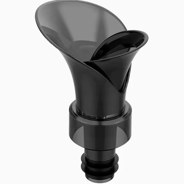 Produktspecifikationer Materiale: plast, gummi. Passer til flaskehalse/vinpropper med en diameter på 20–24 mm. Funktion: hældetud og prop i ét (drej 180° for at lukke). Mål: 9,5 × 5 cm. Farve: sort. I pakken: 1 stk. 2‑i‑1 hældetud.
