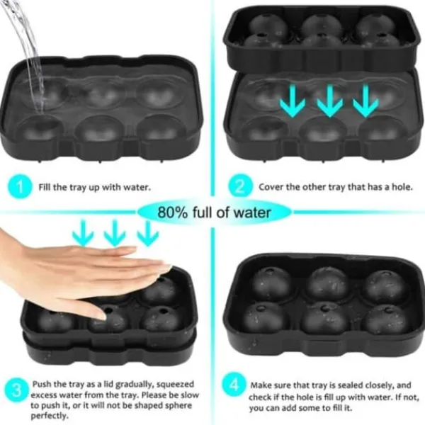 Med denne eksklusive 2-pakke med 6 runde isterninger Silikoneis form kan du nemt skabe store, perfekt runde iskugler. De er perfekte til alle typer drikkevarer og vil gøre din cocktail eller whisky til en unik oplevelse.