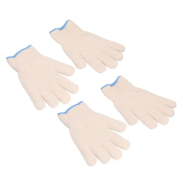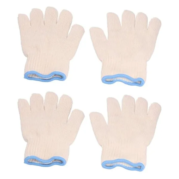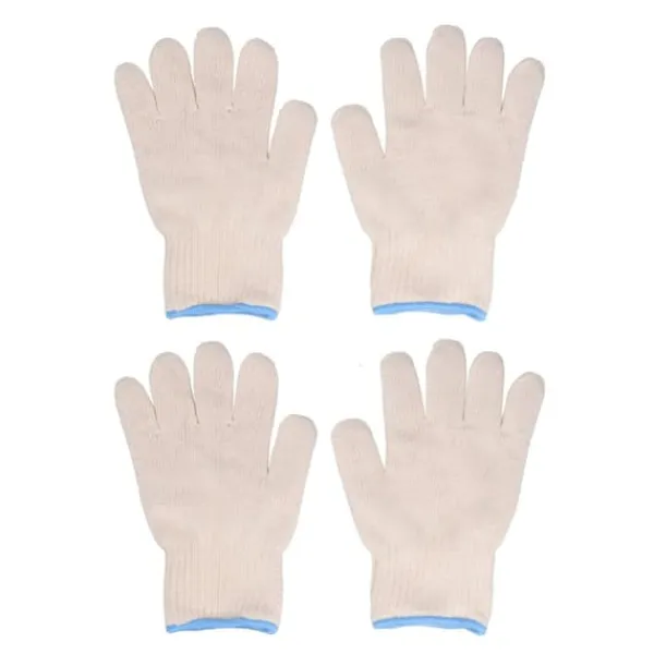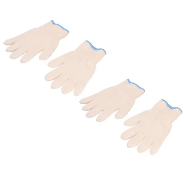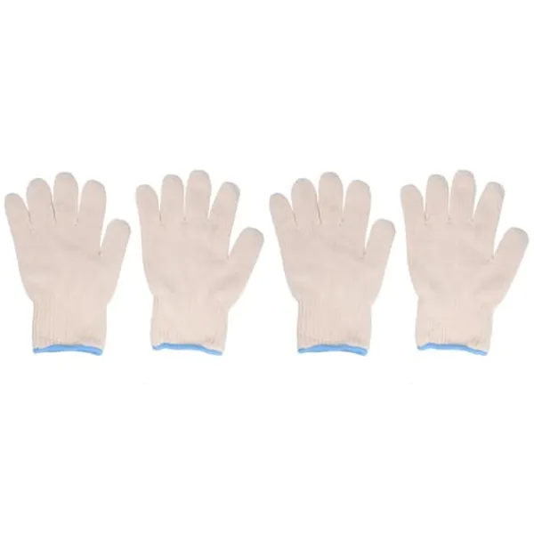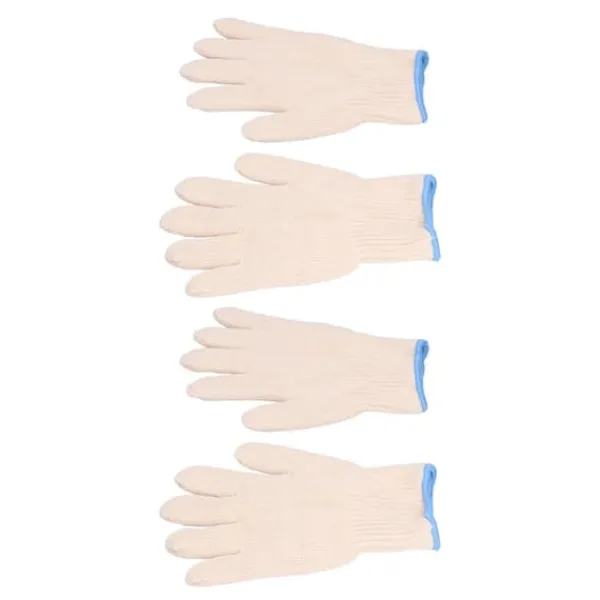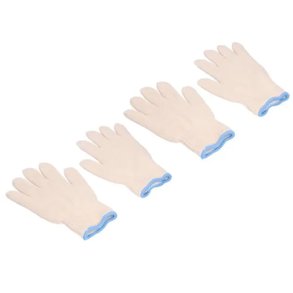 1, blødt materiale: Beskyttelseshandskerne er lavet af bomuldsgarn, som er blødt og hudvenligt og er ret behageligt at have på hænderne.