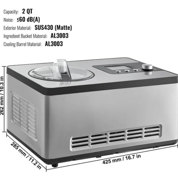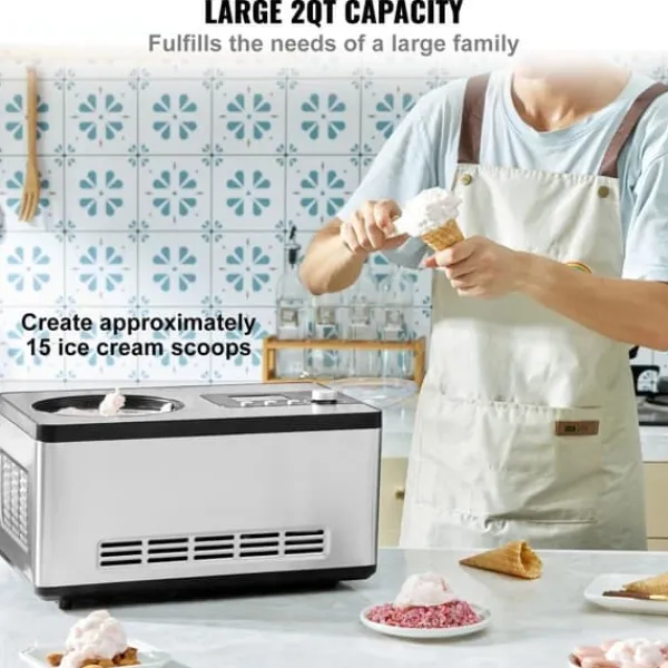 Stor Kapacitet: Denne horisontale 2-qt (2 L) ismaskine til hjemmet kan producere cirka 15 kugler is, hvilket er tilstrækkeligt til at dække behovene i en stor familie. Du kan nyde din ismaskine til familietræf, når du laver gourmetmad derhjemme eller til eftermiddagste.