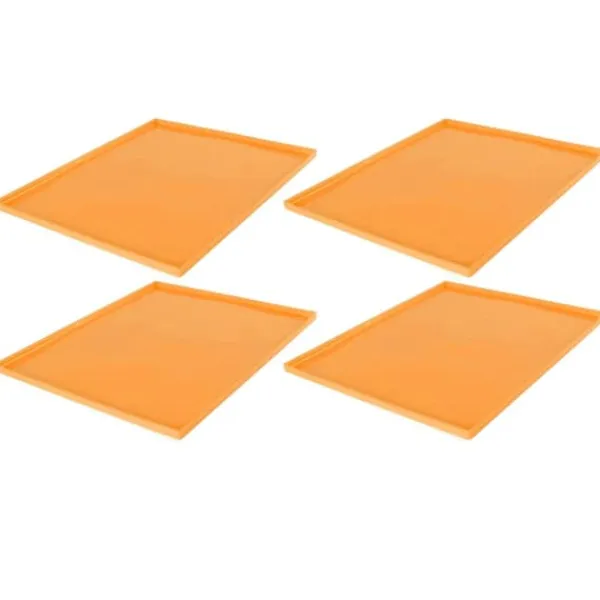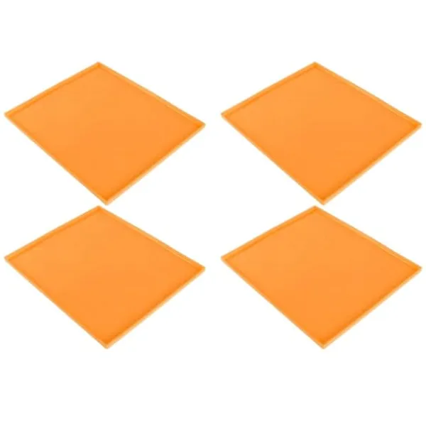 Velkommen til vores butik! Vores BPA-fri silikonebakker til frugttørring er fremstillet af fødevaregodkendt silikone, hvilket sikrer langvarig sikkerhed og pålidelighed til alle dine madlavningsbehov. Hver bakke måler cirka 31 x 26 x 0,9 cm og har en bruttovægt på cirka 555 g. Dette sæt indeholder 4 bakker, der er designet til alsidig brug til fremstilling af frugtruller, frugtlæder, tørret frugt, grøntsager, tørret frugt, kiks, schweizisk wienerbrød og endda tørre supper eller saucer. Bakkerne har en praktisk hævet kant på 0,4 tommer for at forhindre spild og er non-stick for nem rengøring med lunkent vand og en svamp. De er kompakte og kompatible med populære dehydratormodeller som Excalibur 3900B, 2400 og 3926TB. Tilfredshed: Vores kunder er vores højeste prioritet. Hvis du oplever produktproblemer efter modtagelse af varerne, såsom skader eller forkert mængde varer, bedes du kontakte sælgeren med det samme. Vi gør vores bedste for at give dig tilfredsstillende eftersalgsservice.