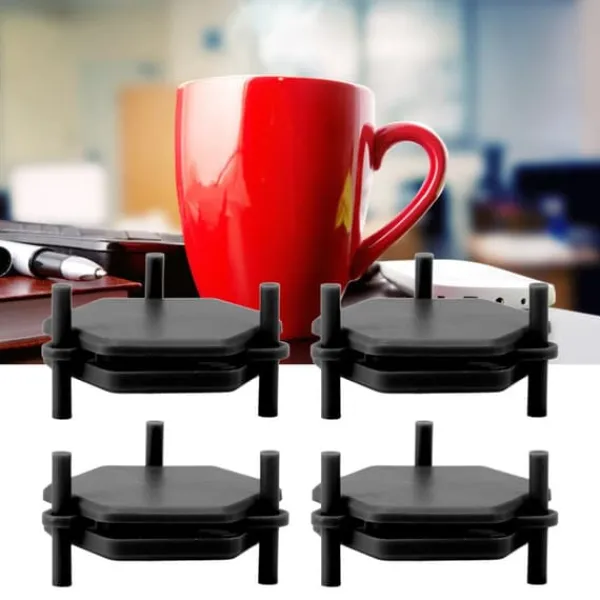 2、COASTER-FUNKTION: Dessa sexkantiga plastunderlägg kan stabilisera koppar för fler förvaringsbehov.
