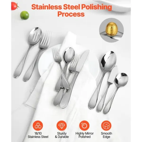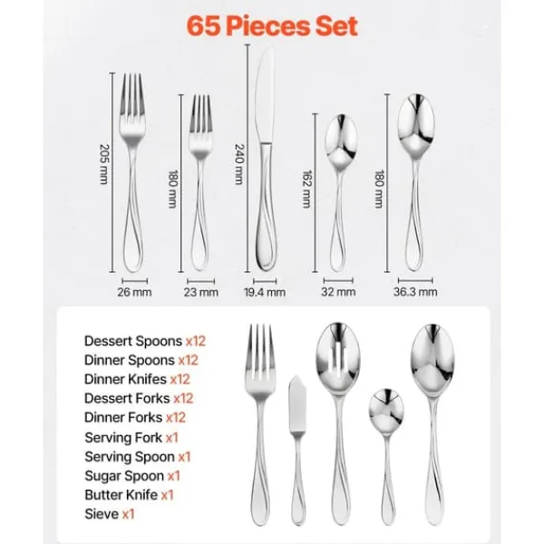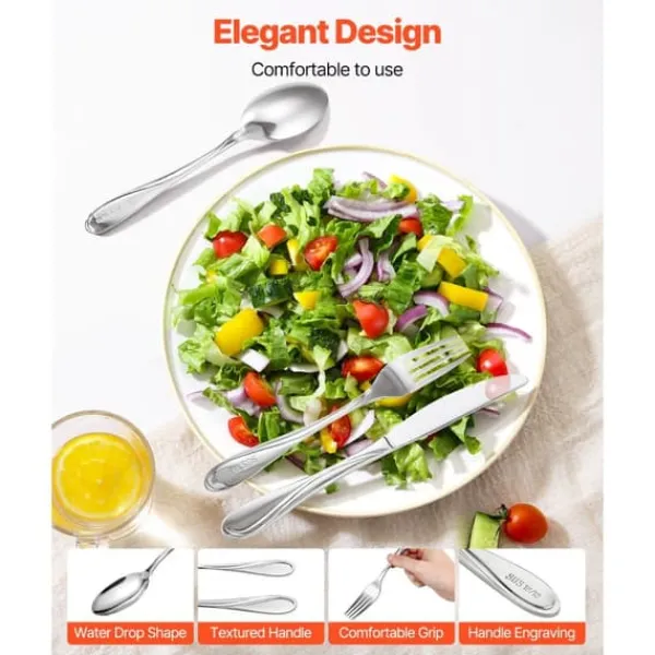 Lavet af førsteklasses 18/10 rustfrit stål, dette bordservice bestiksæt er holdbart, korrosionsbestandigt og rustsikkert med fremragende balance. Det glatte design sikrer komfort under brug. Tåler opvaskemaskine og perfekt vægtet, den er designet til langvarig brug.