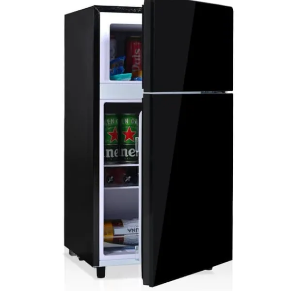 Ce mini-réfrigérateur de 72L combine efficacité énergétique et design moderne avec une porte en verre noir. Il est équipé d’un congélateur de 21L et d’un réfrigérateur de 51L, avec un système de refroidissement direct et un réfrigérant écologique R600a. Grâce à son faible niveau sonore (39 dB) et à ses 7 réglages de température, il offre une solution de stockage flexible pour la maison, le bureau ou le camping-car, tout en étant silencieux et économe en énergie.