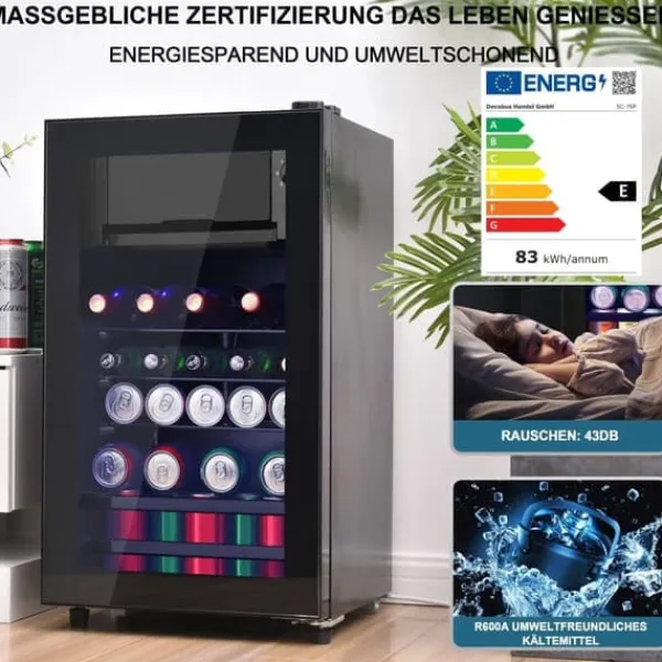 Ce réfrigérateur compact de 76L combine un congélateur de 6L et un réfrigérateur de 70L, offrant un stockage optimal pour vos boissons et aliments. Avec une capacité de 51 canettes de 330ml, il est parfait pour la maison ou le bureau. Grâce à son compressur performant, ses 5 réglages de température et son design moderne avec éclairage LED, il assure un fonctionnement silencieux et une consommation énergétique efficace.