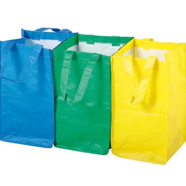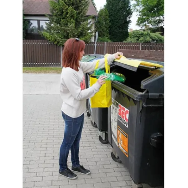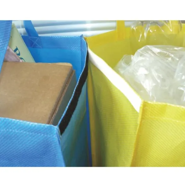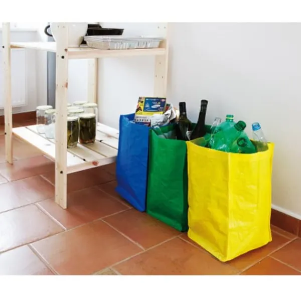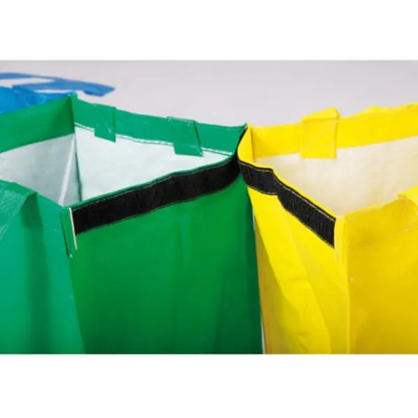 Producentnummer: 3791 3 poser til affaldssortering – Anvendes til affaldssortering primært i boliger, skoler, børnehaver osv. – Fremstillet af needleite stof – slidstærkt og let at rengøre. – Udstyret med velcro på siderne, som gør at taskerne kan forbindes med hinanden. Poserne forbundet på denne måde danner én helhed. – Poser i 3 farver: blå – til papir, grøn – til glas, gul – til plast – Holdbare håndtag muliggør nem tømning af poserne Parametre: hovedmål (mm) – 230x230x400 volumen (l) – 3 x 21l farve – blå, grøn , gul Sættet indeholder: – 3 affaldssorteringsposer