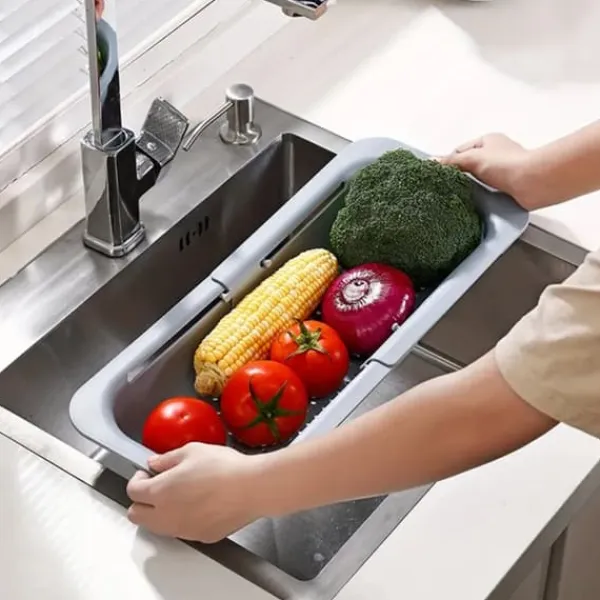 Det udtrækkelige, justerbare aftræk til køkkenvasken er en funktionel gadget, der gør arbejdet i køkkenet lettere. Vi kan bruge den som tørrestativ til opvask eller bestik. Den kan også bruges som en kurv til vask og skylning af grøntsager eller frugt. Takket være den justerbare længde kan den tilpasses de fleste køkkenvaske. Installationen er meget enkel, bare stræk den til den ønskede størrelse og placer den på vasken. Afløbsrøret er lavet af ABS plast. Størrelse: Justerbar længde 37,5- 49,5 cm Bredde 17,5 cm Højde 8,2 cm Farver: grå-beige