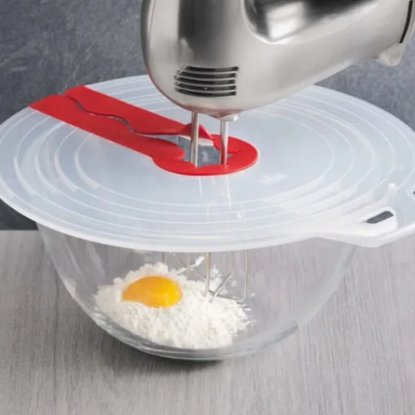 Kan bruges til de fleste æggeskåle, forhindrer effektivt stænk ved piskning af æg eller skumning af mælk.