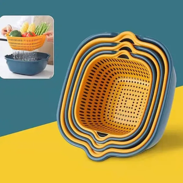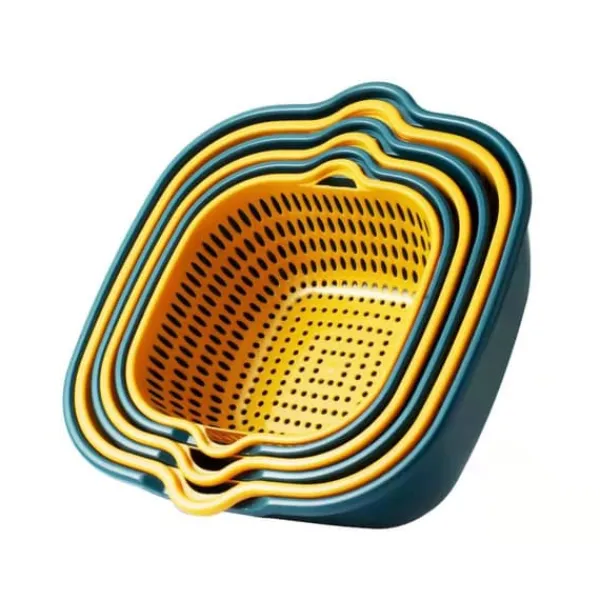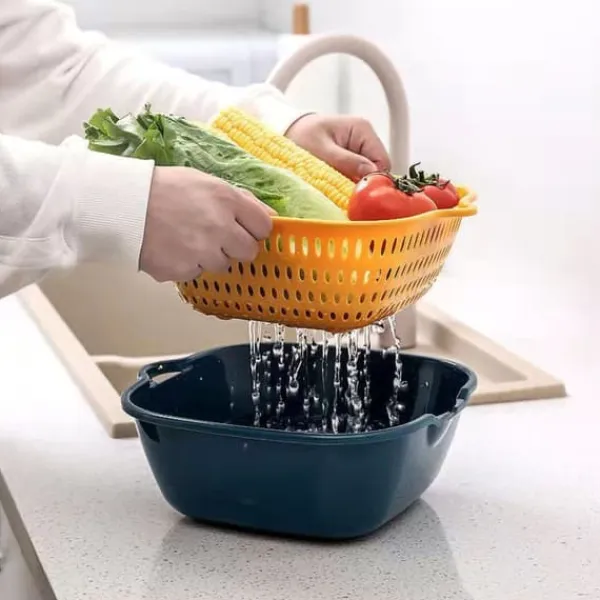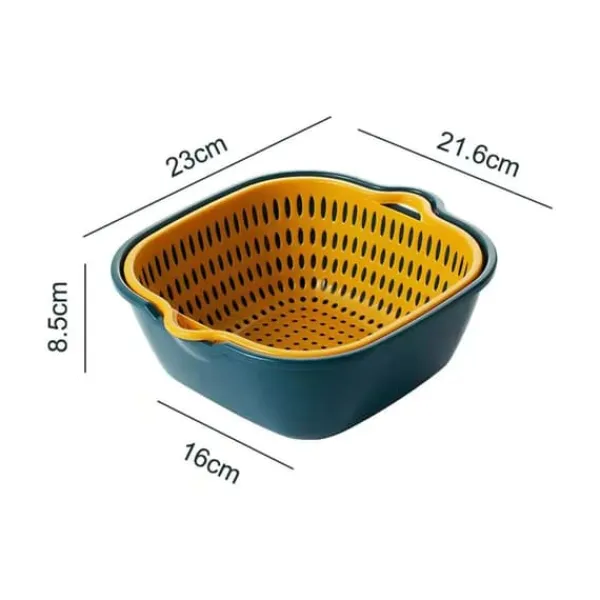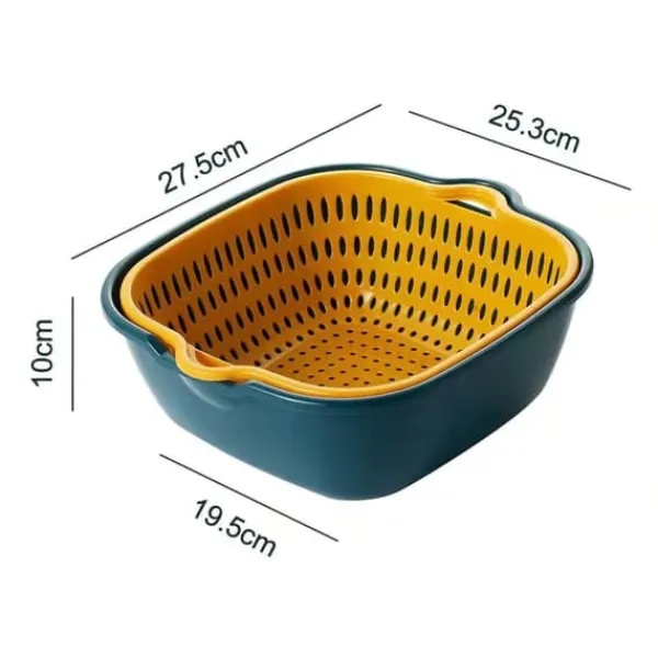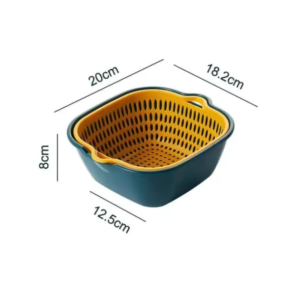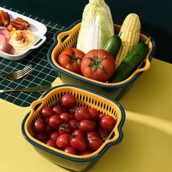 4、Dubbellager: Denna dräneringskorg har en design med dubbla lager, dränering och förvaring kan uppnås samtidigt, dräneringshålen är fina och jämnt fördelade för att snabbt tvätta frukt och grönsaker, det övre lagret är designat för dränering och det undre lagret är designat för förvaring.