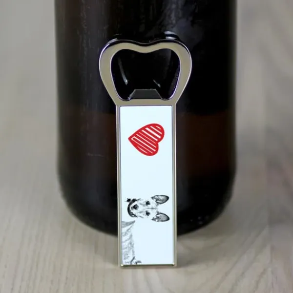 På en dag, der kræver en skål, vil denne åbner gøre fejringen endnu mere behagelig for enhver dyreelsker. Den klassiske oplukker er dekoreret med unik grafik med billedet af en hund, kat eller hest. Produktet har to magneter på bagsiden, takket være hvilke du kan fastgøre gadgetten til køleskabet og altid have den ved hånden. Du kan gøre det endnu mere charmerende ved at sende os et billede af dit kæledyr! Vi udskriver dem i de originale farver eller konverterer dem til “blyantskitse”-versionen, der er synlig i dette tilbud – beslutningen er din.