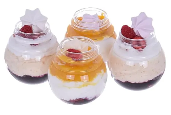 Plastikkrus med låg med en unik, sfærisk form er den perfekte løsning til servering af en række desserter, cocktails, honning, yoghurt, budding eller gelé. De er lavet af holdbart og gennemsigtigt plastik og ser elegante ud på ethvert bord, samtidig med at de sikrer praktiske og nemme brug.