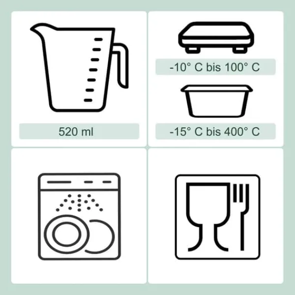 - 6x 520 ml beholder, dimensioner: ca. 7 x 14,5 x 14,5 cm, vægt: ca. 390 g