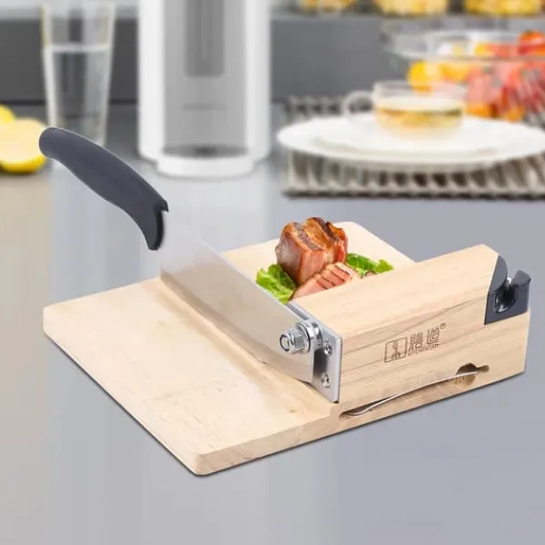 Biltong- og Jerky-skærer + egetræsskærebræt – Beige husholdningsgiljotin
