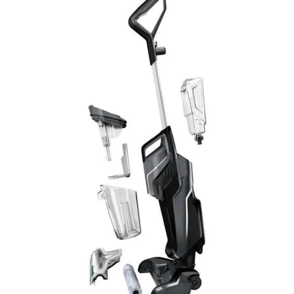 Støvopsamling: poseløs – Rengøringstilstand: 2 rengøringstilstande: hårde gulve og tæpper – Opsamlerkapacitet: 0,62 l – Filtertype: vaskbart plisseret filter – Ledningslængde: ledningsfri – Medfølgende værktøj: børste til flere overflader, antimikrobielle filtre, 2 rengøringsmidler – Maksimalt lydniveau: 80 dB