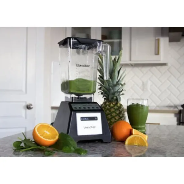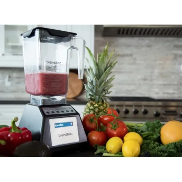Blendtec Total Blender er en mixer, der er designet og fremstillet i USA. Denne omhyggeligt udviklede produkt i familievirksomheden kaldes verdens mest avancerede mixer, og det med god grund! På grund af Blendtecs højkvalitets egenskaber har den flere patenter og op til 8 års garanti. Blendtecs forprogrammerede smoothie-program sikrer en silkeblød slutprodukt hver gang. En touchskærm frigør dine hænder til andre opgaver, mens ingredienserne effektivt blandes i maskinen. Mere kraft! Med sine tre hestekræfter kan Blendtec knuse is og nødder på ingen tid. Med Blendtec kan du lave smoothies, rågrød, varme supper, salsa, pasta saucer, dressinger, dej og meget mere. Kun din fantasi sætter grænserne!