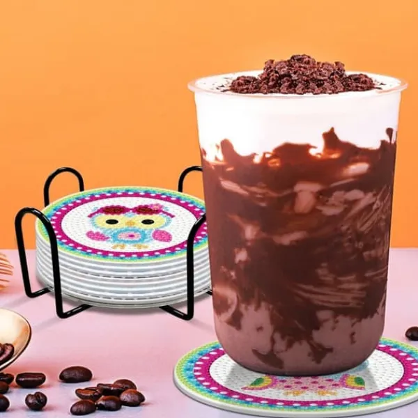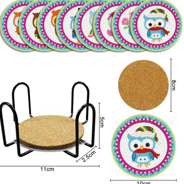 Sættet indeholder de elementer, der er nødvendige for at lave 8 bordskånere til glas eller kopper. Hver bordskåner har en korkpude, der beskytter toppen mod drikkens temperatur.