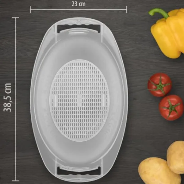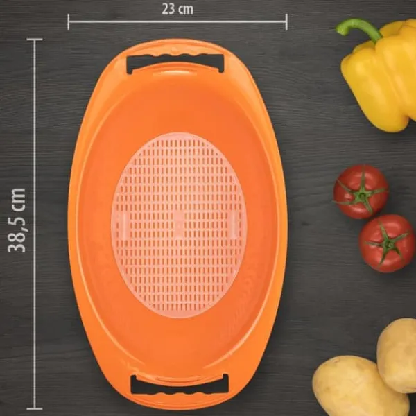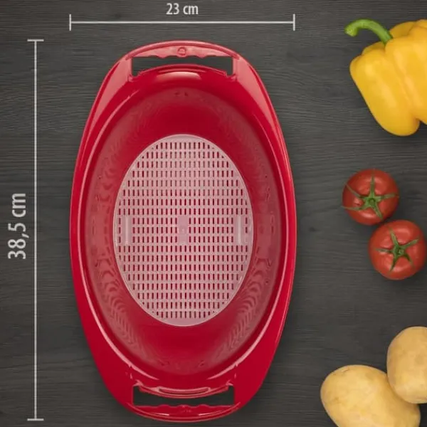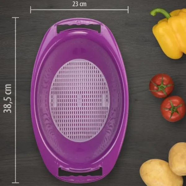Perfekt passende, sikker placering af Boerner V5 Denne velformede originale Boerner drypbakke er specielt designet til V5® PowerLine V-sliceren og garanterer en perfekt, sikker pasform af V-sliceren. Afklippet fanges i skålen, og salater kan serveres direkte i den. Tillægssien tjener som dræningshjælp til nyvaskede salatblade, frugt osv. Produktdata: drypbakke som originalt Boerner-tilbehør funktionel pasform til V-Slicer V5 PowerLine med si-indsatsolie og eddikebestandig nem at bruge og rengøre fri for blødgørere og BPA i farverne: Rød, Orange, Grøn, Violet og Hvid