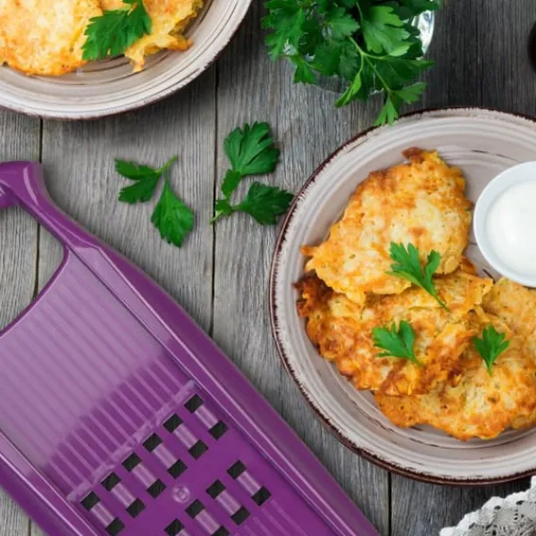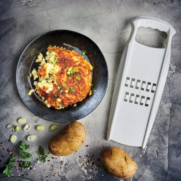Har du ikke lavet kartoffelpandekager eller roesti i lang tid? Med den originale Boerner Roesti PowerLine og frugtholderen bliver det en oplevelse at skære Roesti og fritter i skiver. Uanset om det er kartofler, gulerødder, selleri eller æbler, pærer, endda hård ost, er det ikke noget problem for vores praktiske rivejern. I kombination med den medfølgende frugtholder kan du på ingen tid forarbejde både rå og kogte grøntsager til Roesti-skiver.