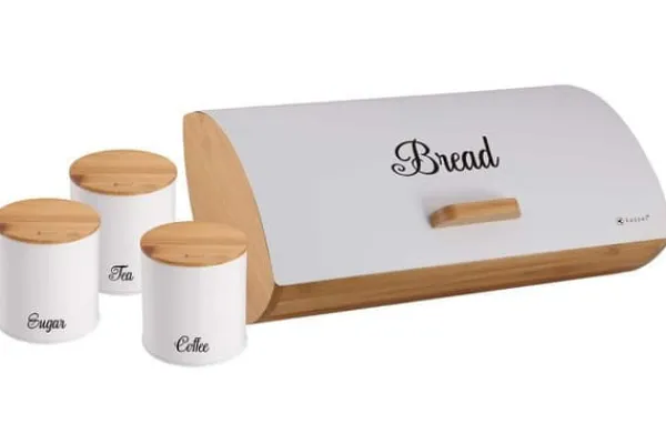 Elegant Kassel brødkasse med et sæt beholdere – moderne design og funktionalitet i ét Kassel brødkassen er en kombination af æstetik og funktionalitet. Dets moderne design og universelle farver passer perfekt ind i ethvert køkken, hvilket giver det en unik karakter. Sættet indeholder også beholdere til te, kaffe og sukker, som fuldender det hele, hvilket skaber et harmonisk opbevaringssæt: Krop: Lavet af naturligt bambustræ, som er både let og slidstærkt Låg: Lavet af lakeret rustfrit stål at holde ren og modstandsdygtig over for skader Let at holde ren: Takket være dens enkle design er brødboksen nem at rengøre, hvilket sikrer bekvemmelighed ved daglig brug Mål: 35 x 25 x 15,5 cm – ideel til opbevaring af brød i køkkenet Beholderspecifikationer: Fremstillet af lakeret rustfrit stål, der sikrer holdbarhed og æstetisk udseende. passende størrelse til opbevaring af løse produkter Hvorfor er det værd at vælge en Kassel brødkasse: Kombinationen af bambustræ og rustfrit stål giver dit køkken et moderne og elegant udtryk accent.Funktionalitet: Brødkassen og beholderne til te, kaffe og sukker udgør en omfattende opbevaringsløsning i køkkenet. Materialer af høj kvalitet: Naturligt træ og rustfrit stål sikrer holdbarhed og modstandsdygtighed over for daglig brug.Nem at holde ren: Den glatte overflade på materialerne gør rengøringen nem og bekvem. Alsidighed: Sættet passer perfekt til andet Kassel-tilbehør, så du kan skabe et sammenhængende køkkenarrangement. Vælg Kassel-brødboksen beholdere, der ikke kun hjælper dig med at opbevare brød og løse produkter, men også bliver et stilfuldt dekorativt element i dit køkken.