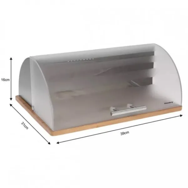Brødkasse lavet af højkvalitets træ og akryl. Ergonomisk design – åbning af låget kræver ikke ekstra plads, fordi brødbeholderen åbnes ved at skubbe den. Velegnet til opbevaring af alle slags brød og slik. Brødkassens tæthed garanterer længere friskhed af brødet. Der blev brugt miljøvenlige og hygiejniske materialer i produktionen. Meget solid og langtidsholdbar konstruktion. Størrelse: 39 x 31 x 16,3 cm
