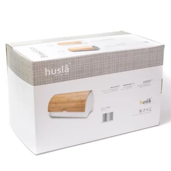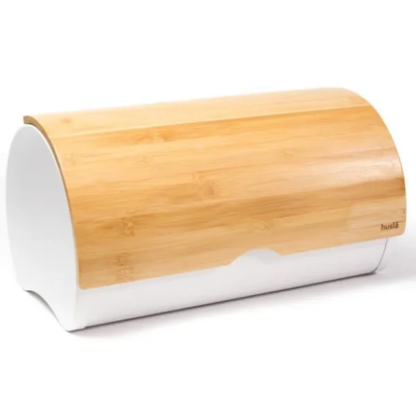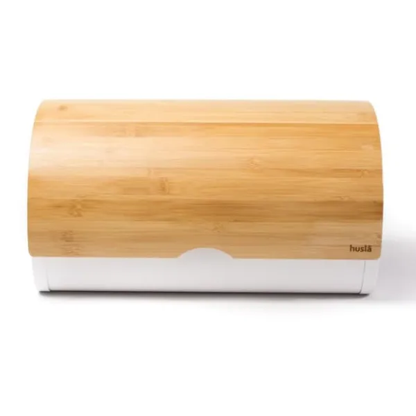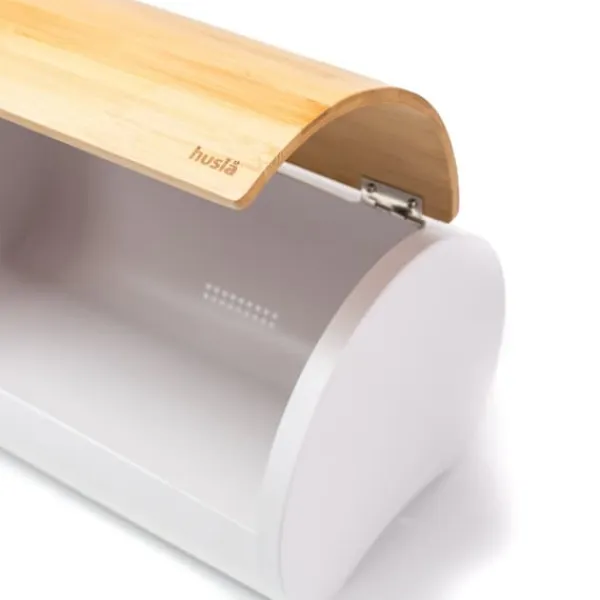 Beholder til opbevaring af brød Kroppen er lavet af rustfrit stål og låget er lavet af bambustræ