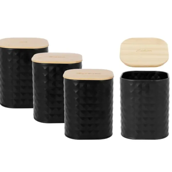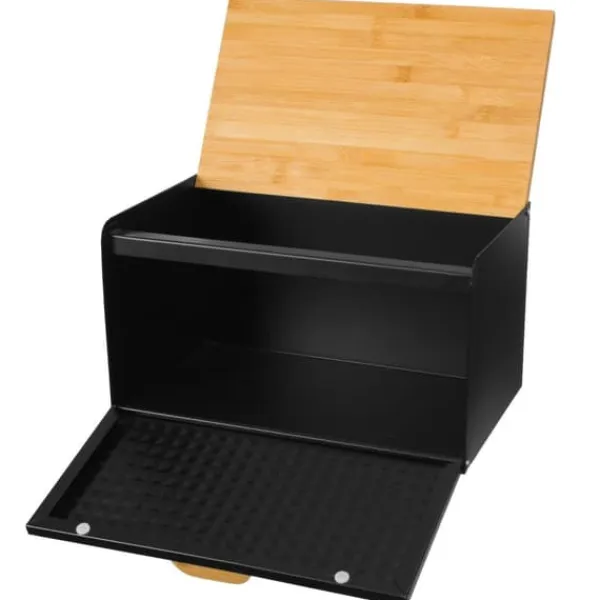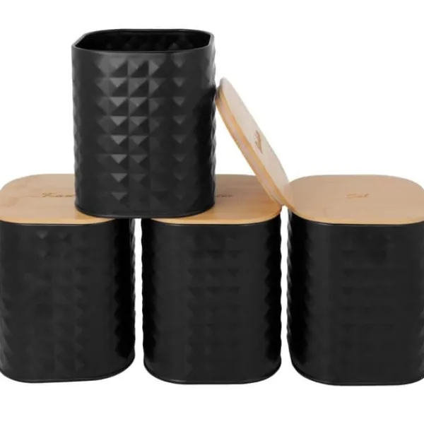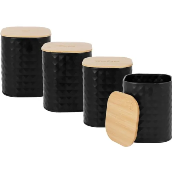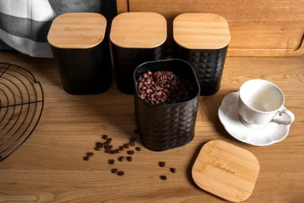 Elegant sæt fra BRUNBESTE, inklusive en brødbeholder, 4 beholdere og en kniv. . Fremstillet af kulstofstål med en semi-mat pulverlakering. Dobbeltsidet åbning. Låget af bambustræ åbner og lukker nemt og fungerer som et skærebræt. Attraktiv, praktisk og robust konstruktion. Beholderne har tætsluttende låg (også lavet af bambustræ), hvilket gør dem velegnede til en lang række genstande. Primære anvendelser omfatter te, kaffe, sukker og salt.