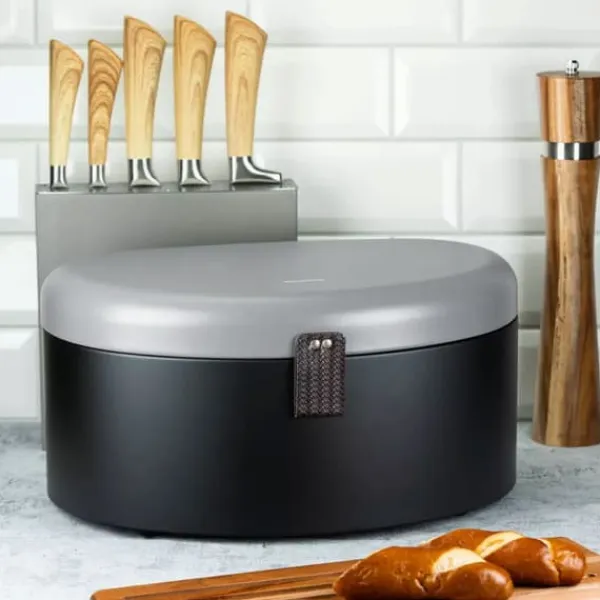 Brødspand af stål fra KLAUSBERG. Ud over sine praktiske funktioner fungerer denne brødbeholder også som en interessant indretning. Brødspanden har et unikt design.