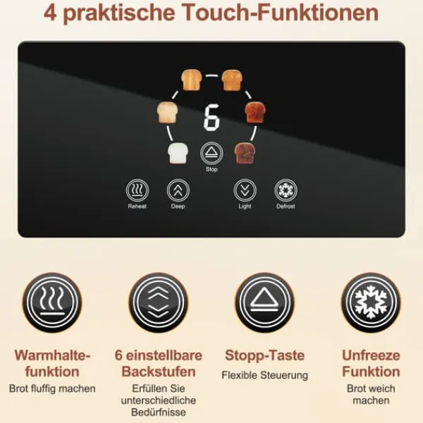 - tilpasselig bruning: tilpas dit toast efter dine præferencer med syv justerbare niveauer, som sikrer, at du får den perfekte farve hver gang.