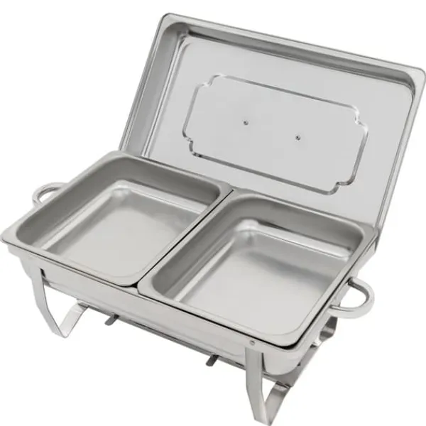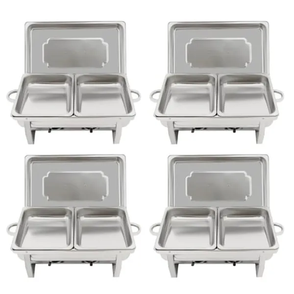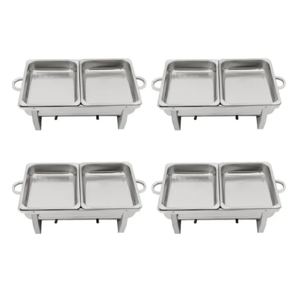 Hver chafing dish har en 9,5 Qt vandbakke og to 3,7 Qt indsatsbakker, så du kan servere flere retter til ca. 10 personer pr. enhed. Sættet indeholder fire enheder til både små og store arrangementer.