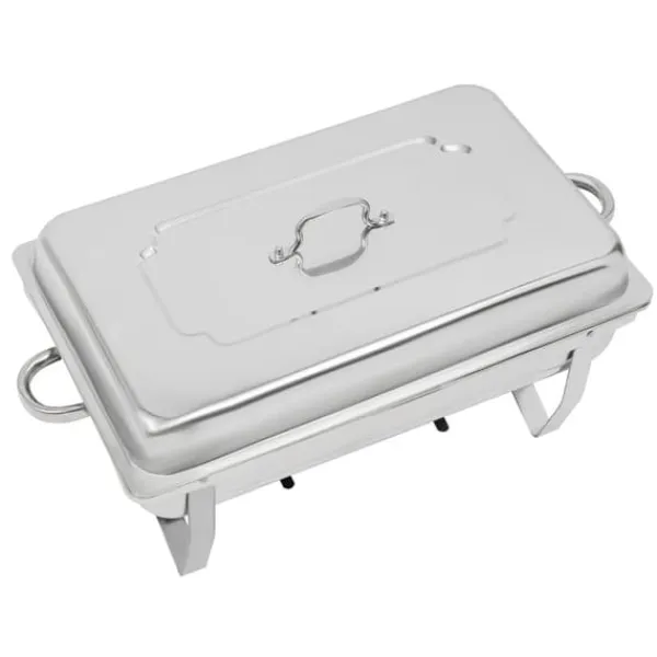 Rektangulært, sølvfarvet design passer ind i enhver borddækning. Brænderdrift gør dig uafhængig af strøm – perfekt til picnic og catering.