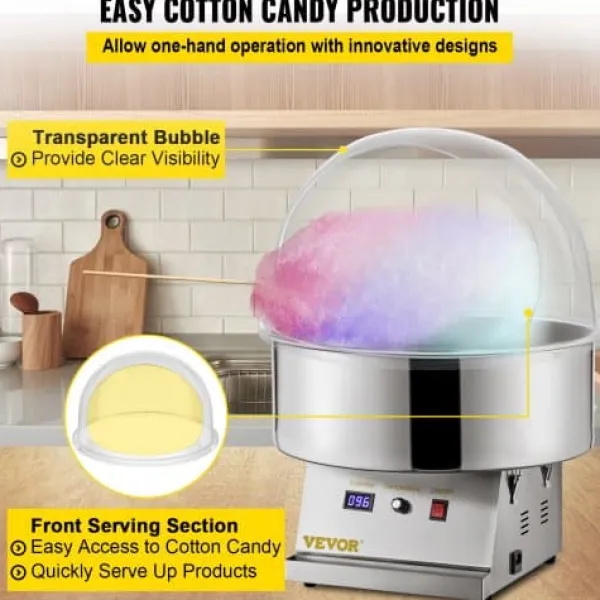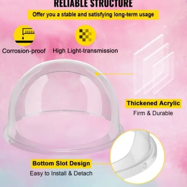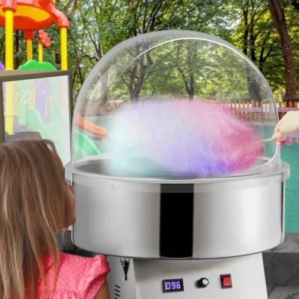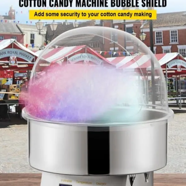 Dette kuppellåg er designet til at passe til de fleste kommercielle candyflossmaskiner og giver et beskyttende skjold, der øger sikkerheden og hygiejnen under brug. Fremstillet af forstærket akryl, tilbyder det holdbarhed, klar gennemsigtighed og nem montering, hvilket gør det ideelt til både professionel og privat brug. Det transparente design gør det muligt at overvåge candyfloss-processen, mens produktet holdes inde og let tilgængeligt.