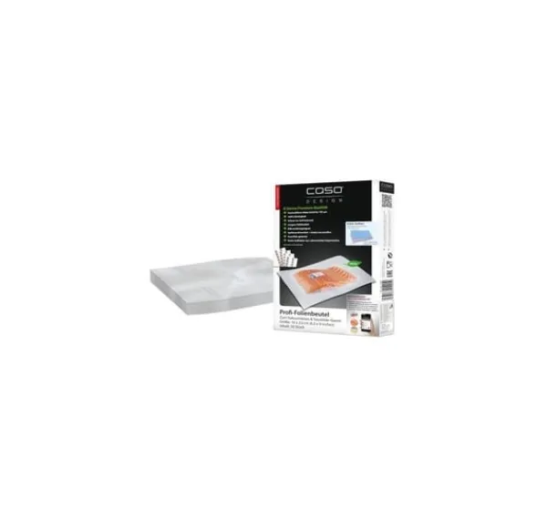 Andre funktioner: Stærk & rivefast, Ribbet struktur (overflade for et optimalt vakuum), Ingen fryser-brænding, Kogesikker, Kun testet med Caso-forseglere