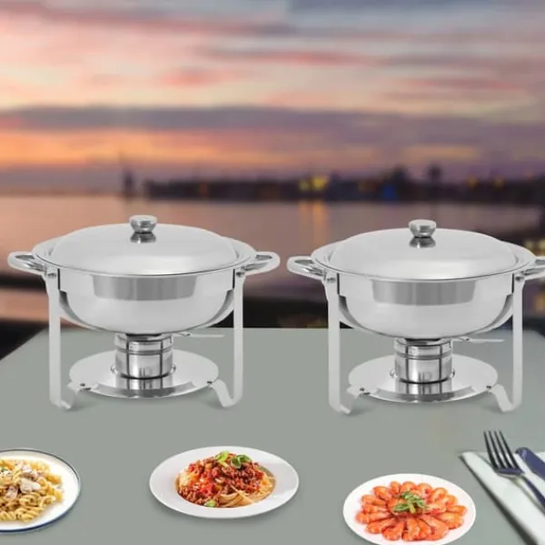 Gør selvbetjening nem og elegant med dette lilla chafing dish-sæt. Den runde 4,5 L beholder i rustfrit stål holder maden varm med alkoholbrændsel, så gæsterne kan nyde retterne ved den rette temperatur gennem hele arrangementet.