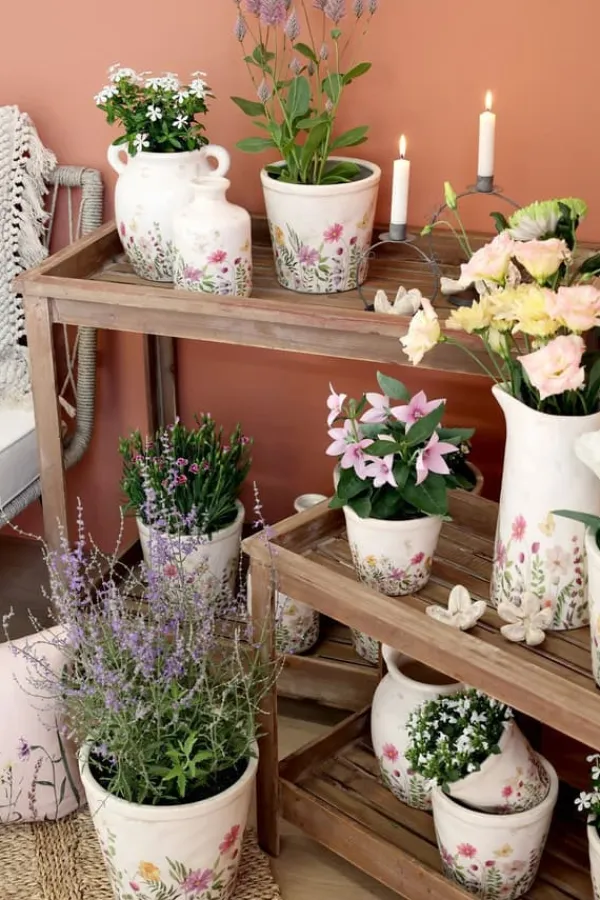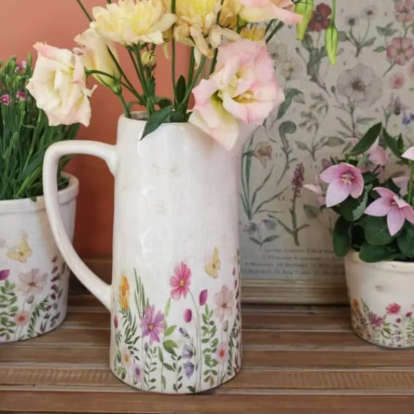 Kanna ifrån serien Avignon – en vacker keramik kanna med handtag med sommarblommor i härliga färger. Kan användas både ute och inne.