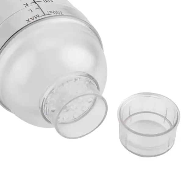 Denne shaker er lavet af holdbart og miljøvenligt PC-harpiksmateriale, der sikrer anti-lækage, selv når du ryster flasken hårdt. Den har udsøgt håndværk og fin stanseteknologi med små runde huller, der er fint stanset og uden grater. Den klare skala på shakeren gør den mere bekvem at bruge.