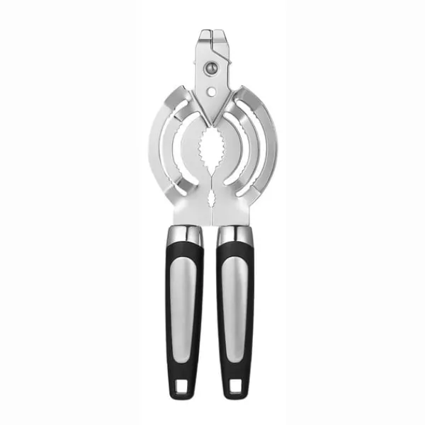 Multifunktionelt design: Mere end bare en dåseåbner, dette alsidige værktøj fungerer også som en oplukker og krukkeåbner. Den integrerede oplukker giver dig mulighed for nemt at åbne dine yndlingsdrikke, mens krukkeåbneren giver ekstra vægtstang til at åbne stædige krukkedæksler. Dette multifunktionelle design gør det til en værdifuld tilføjelse til ethvert køkken.