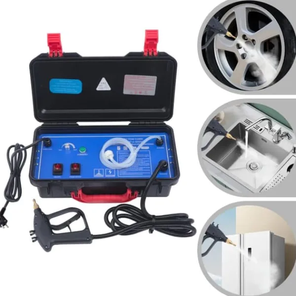 Kraftig håndholdt damprenser i sortDenne moderne håndenhed på 3000 W og 220 V leverer våd- og tørdamp til dybderengøring på mange overflader. Solidt design i ABS og rustfrit stål, EU-stik og praktisk tilbehør gør rengøring af køkken, badeværelse, bil og smalle områder hurtig og effektiv.