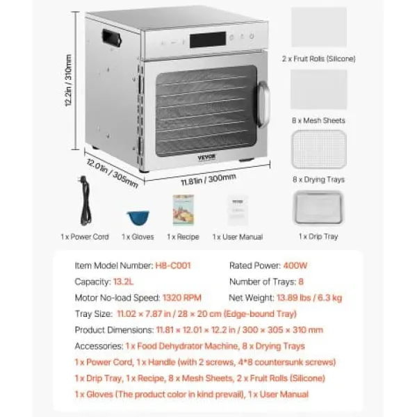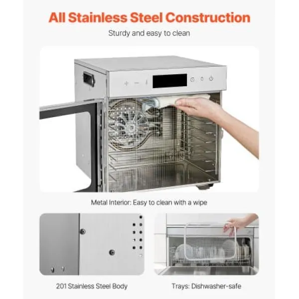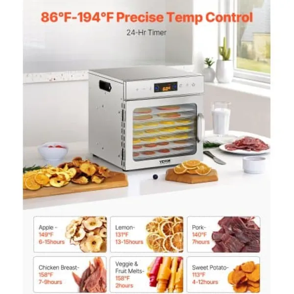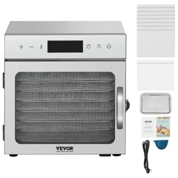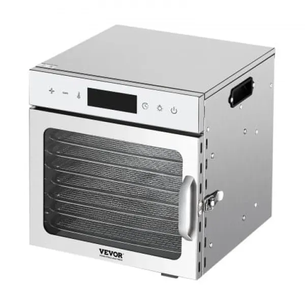 Denne madtørrer sikrer effektiv og jævn tørring af en lang række fødevarer, så næringsstoffer og smag bevares uden brug af tilsætningsstoffer. Med sin store kapacitet, justerbare temperatur og timer er den perfekt til at lave sunde snacks som tørret kød, tørret frugt, krydderurter og hundegodbidder derhjemme. Konstruktionen i rustfrit stål og de opvaskemaskinesikre bakker sikrer holdbarhed og nem rengøring.