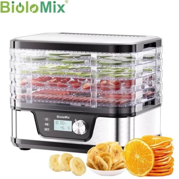 - stort tørringskapacitet: udstyret med fem store bakker, giver denne dehydrator rigelig plads til en bred vifte af fødevarer, hvilket øger din produktivitet i køkkenet.