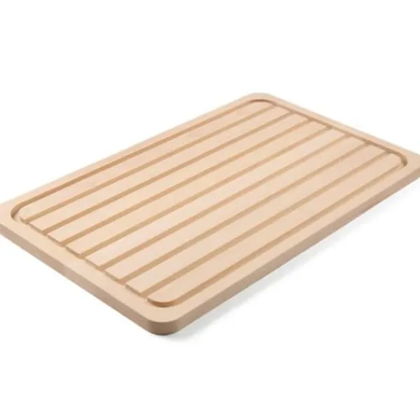 Producentnummer: HENDI 505403 Dobbeltsidet skærebræt fra Hendi. Produktegenskaber: – lavet af bøgetræ – 1 side glat – traditionel – 2 sider rillet – til at skære brød – tåler ikke opvaskemaskine Parametre: – længde: 530 mm – bredde: 325 mm – højde: 18 mm Sættet indeholder: – skærebræt