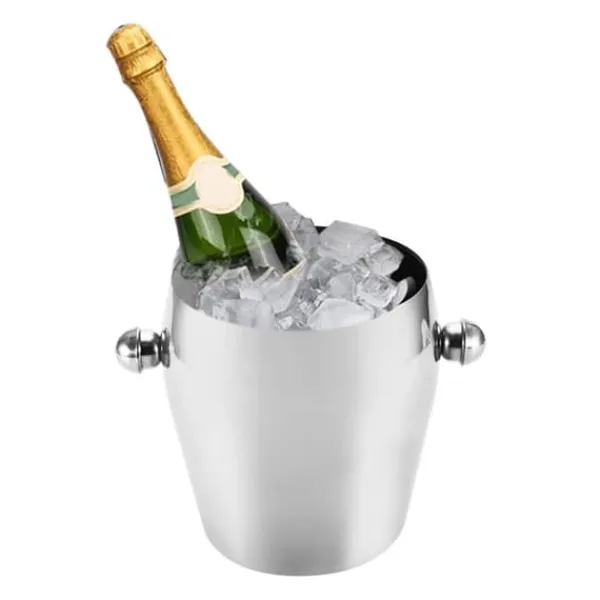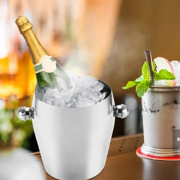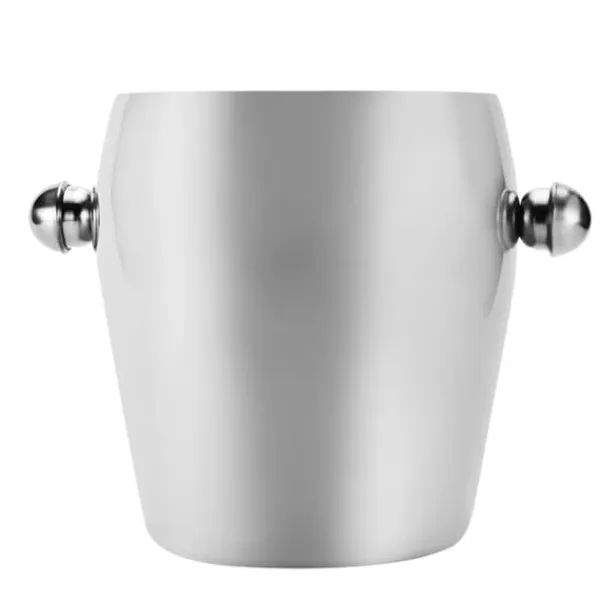 Denne isspand er lavet af rustfrit stål af høj kvalitet og har en kapacitet på 1 l, 2 l eller 3 l. Den har et hammerdesign på cylinderhuset, som ikke kun giver en skridsikker funktion, men også et moderigtigt og smukt udseende. Spejlpoleringen på ydersiden sikrer en ren og nem rengøringsvenlig finish. Den indvendige trådtrækningsproces forbedrer slidstyrken og tilføjer en enkel, men stilfuld tekstur. Det konkave skridsikre design i bunden absorberer isvand, hvilket gør den glat, delikat og nem at rengøre.