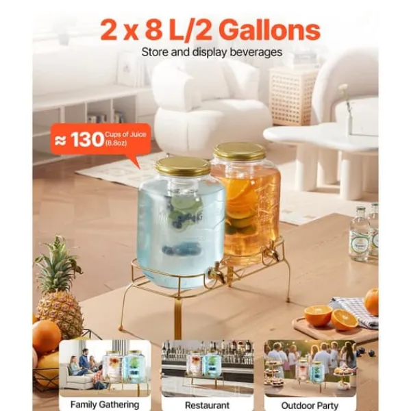 Designet med den brede åbning gør juicedispenseren nem at genopfylde, metalstativet giver stabil støtte og nem dispensering, og låget forhindrer støv eller snavs i at trænge ind, hvilket sikrer, at dine juicer forbliver rene og lækre.