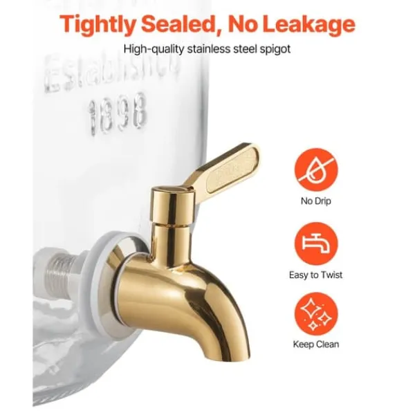 Drikkedispenseren er udstyret med en tætsluttende rustfri ståltap, hvilket gør den praktisk til at tappe uden lækage, så du ikke behøver at bekymre dig om at rengøre spilde drikkevarer. Dette hjælper med at holde din drikkestation ren og pæn.