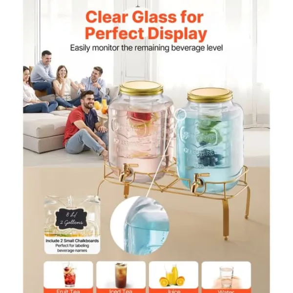 Det transparente design fremviser smukt din juice eller dine drikkevarer, ideelt til at vise frugtthe, iste, juice, vand og meget mere. Citronadedispenseren leveres også med to små tavler, perfekte til at mærke drikkevarenavne.