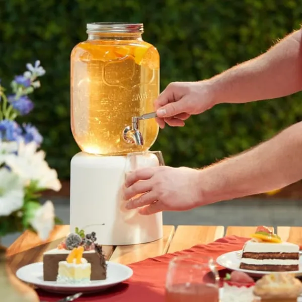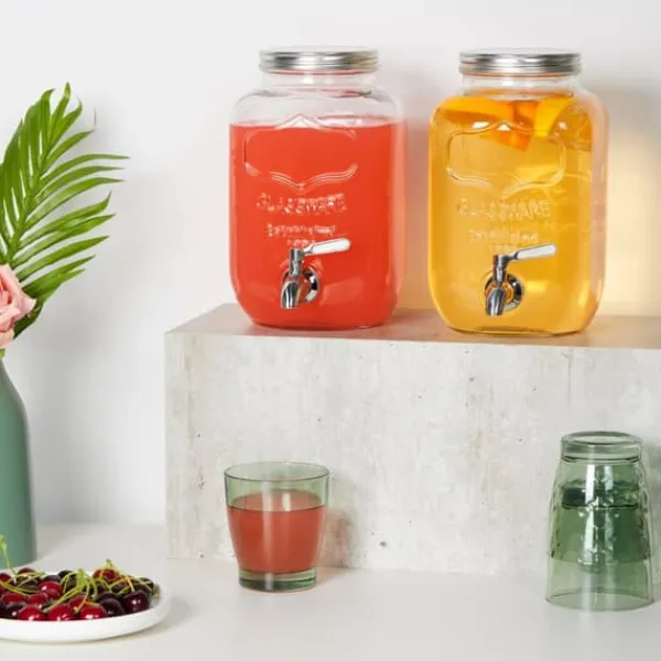 Dette sæt med to glas drikkedispensere er perfekt til servering af forskellige drikkevarer ved havefester, fødselsdage eller sammenkomster derhjemme. Med et elegant vintage design og praktiske haner for nem påfyldning holder disse dispensere drikkevarerne beskyttet og let tilgængelige for dine gæster. Lågene hjælper med at forhindre insekter og snavs i at forurene dine forfriskninger.
