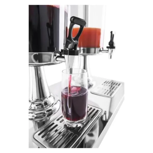 Producentkode: 10010334 RCSD-2 kølejuicedispenseren er designet til servering af kolde drikke i restauranter, buffeter og kantiner. Dispenseren har skridsikre fødder, hvilket gør den stabil under brug. To beholdere med en kapacitet på 2×7 liter er lavet af polycarbonat. Inde i hver af dem er der et knust isrør, der fordeler kulden gennem drikken. Fuld tanke er nok til at fylde cirka 70 glas ad gangen. Bekvem brug af køledispenseren sikres af en letanvendelig hane, hvorunder du kan stille et glas op til 14,5 cm højt. Den aftagelige drypbakke gør det nemt at rengøre dispenseren, mens det aftagelige låg giver dig mulighed for bekvemt at hælde drikken op. Egenskaber og funktioner: – Kapacitet – to 7-liters tanke, – Hygiejne – drypbakke inkluderet, – Køling – isrør lavet af rustfrit stål sænker effektivt drikkevarens temperatur, – Stabilitet – 4 skridsikre gummiben, – Kompatibilitet – til briller med en maksimal højde på 14,5 cm. Tekniske parametre: – Model – RCSD-2 – Katalognummer – 1334 – Artikeltilstand – Ny – Tankkapacitet – 7 l – Tankmateriale – Plast – Materiale af dæksel, rør, bund – Rustfrit stål – Antal tanke – 2 stk – Diameter og tankhøjde – 210 x 260 mm – Maksimal glashøjde – 145 mm – Dimensioner (LxBxH) – 35 x 56 x 57 cm – Vægt – 5,5 kg – Forsendelsesmål (LxBxH) – 58 x 39 x 55 cm – Forsendelsesvægt – 7,8 kg Sættet indeholder: – Køledispenser til drikkevarer – Brugsanvisning