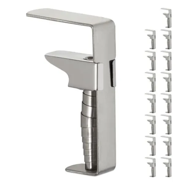 Justerbare dugholdere til tykke borde. Ved en udendørs fest kan et let vindstød hurtigt føre til en kamp med dugen. Køb disse dugklemmer, så du kan spise og drikke i fred og ro, selv i en let brise. Dugholderne, der er fastgjort til dugen, sikrer, at den sidder sikkert på plads og ikke flytter sig, selv indendørs. Dugholderne er hurtige at installere og justere til forskellige bordpladetykkelser. Det sølvfarvede design falder diskret i ét med bordet.