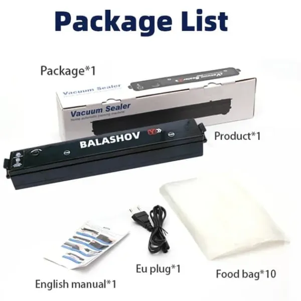 - 1 × vakuumforsegler (sort, EU‑stik)