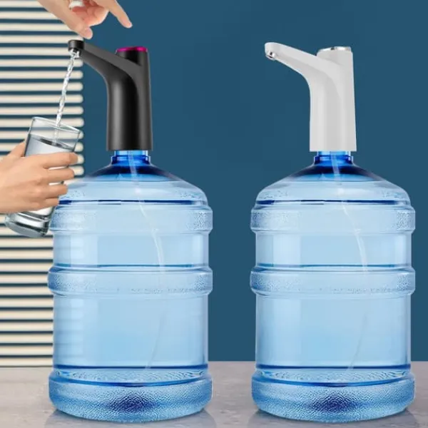 Bærbar vandpumpedispenser – sortEn kompakt, genopladelig dispenser til bord eller flaske, der gør påfyldning nem i hjemmet, på kontoret og på farten. Med ca. 1,2 l/min flow, to tilstande (kontinuerlig/600 ml) og lavt støjniveau får du hurtig og ren udskænkning fra kompatible dunke.